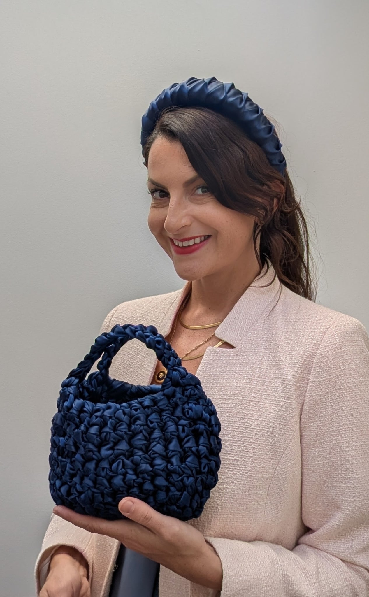 For the first time ever, we are delighted to announce the launch of our luxurious handmade handbags, Lilah, Zinnia and Grace. Crafted in the same colour and material as our headbands for a perfectly matched finish.
