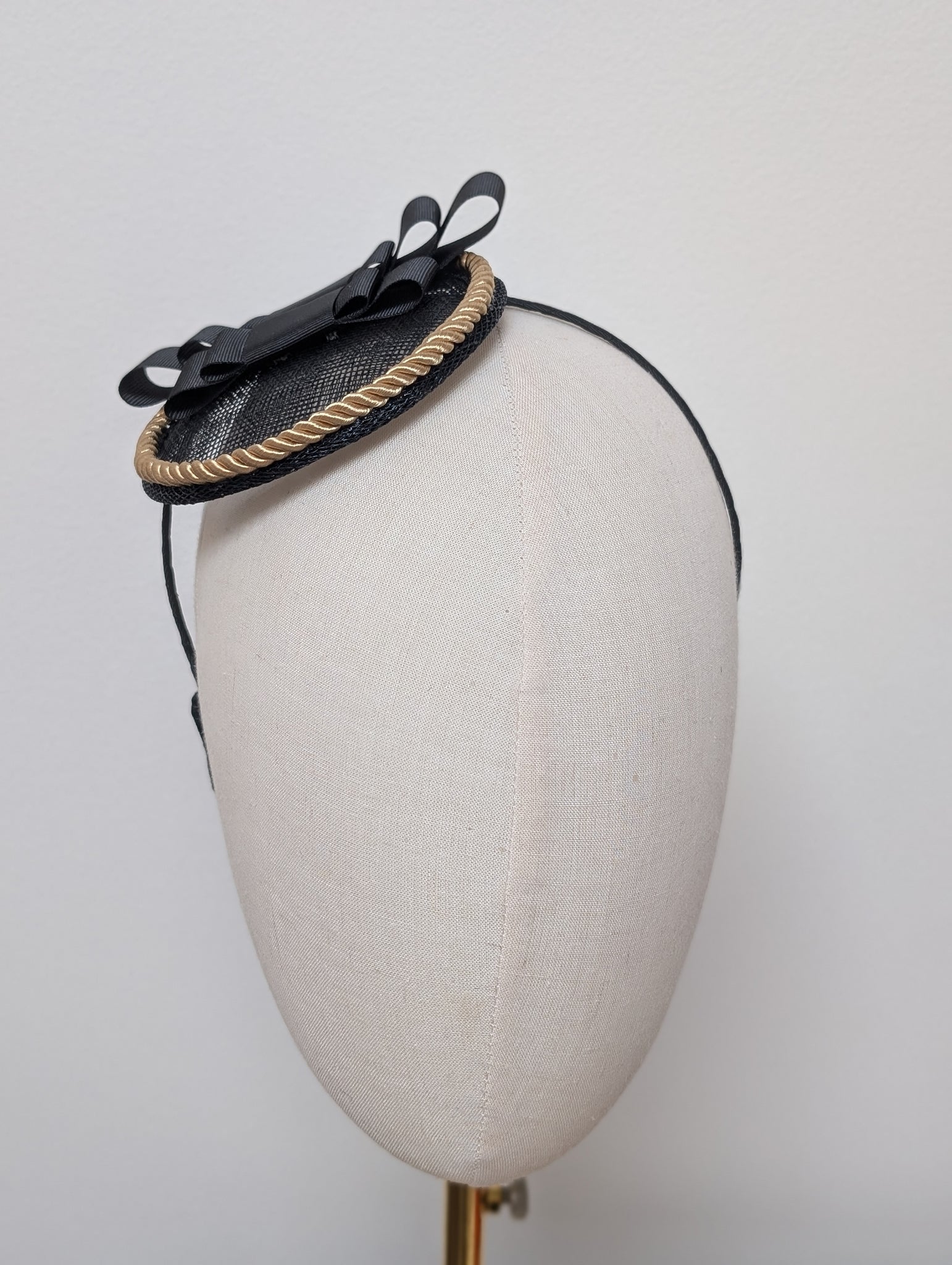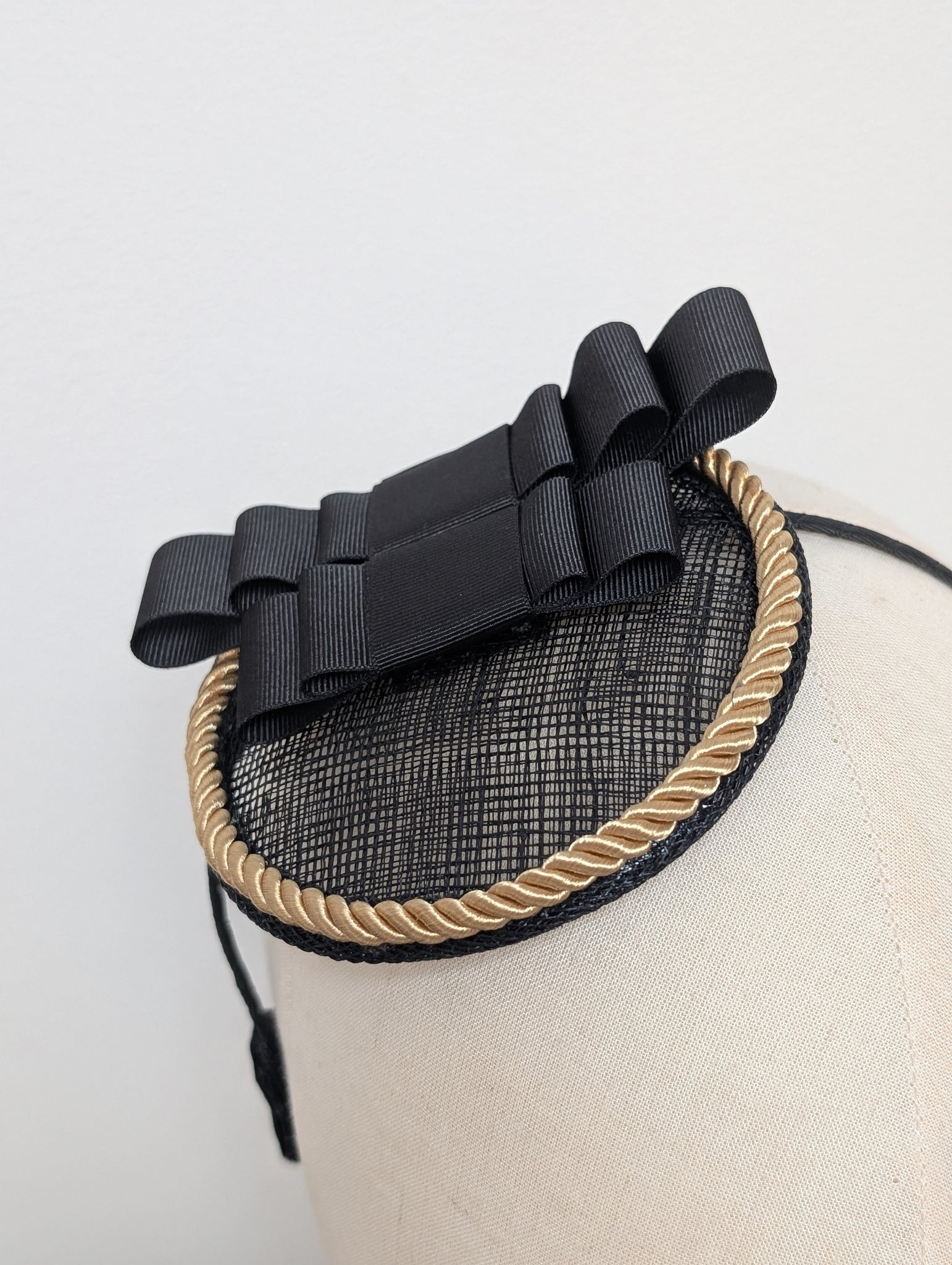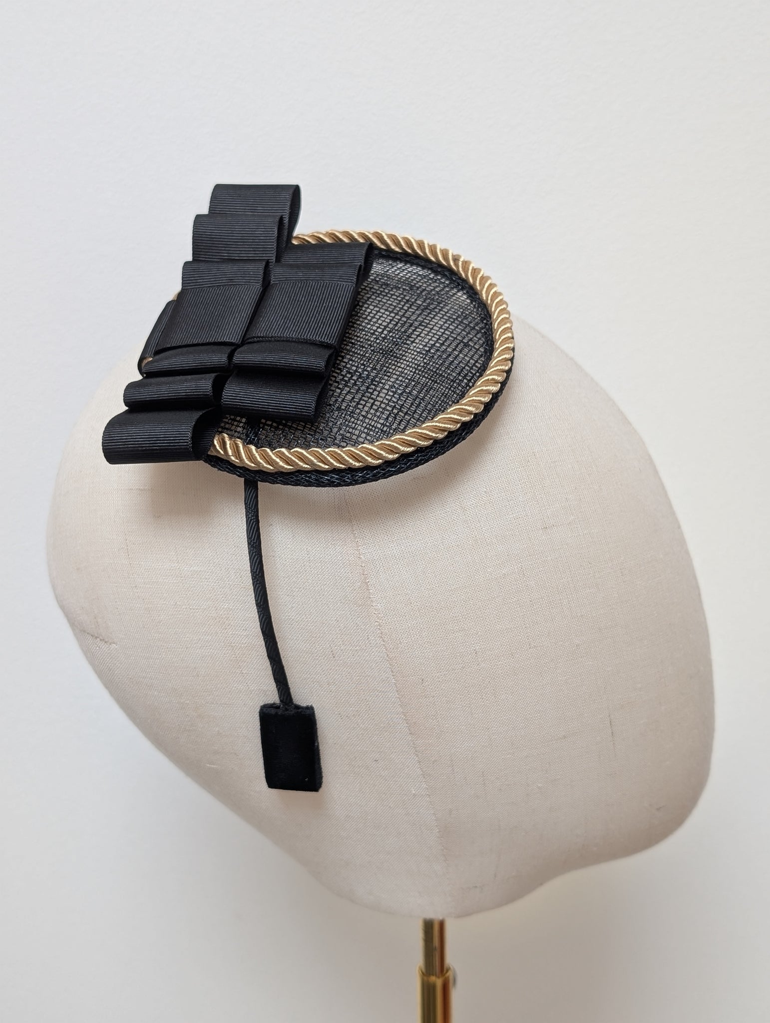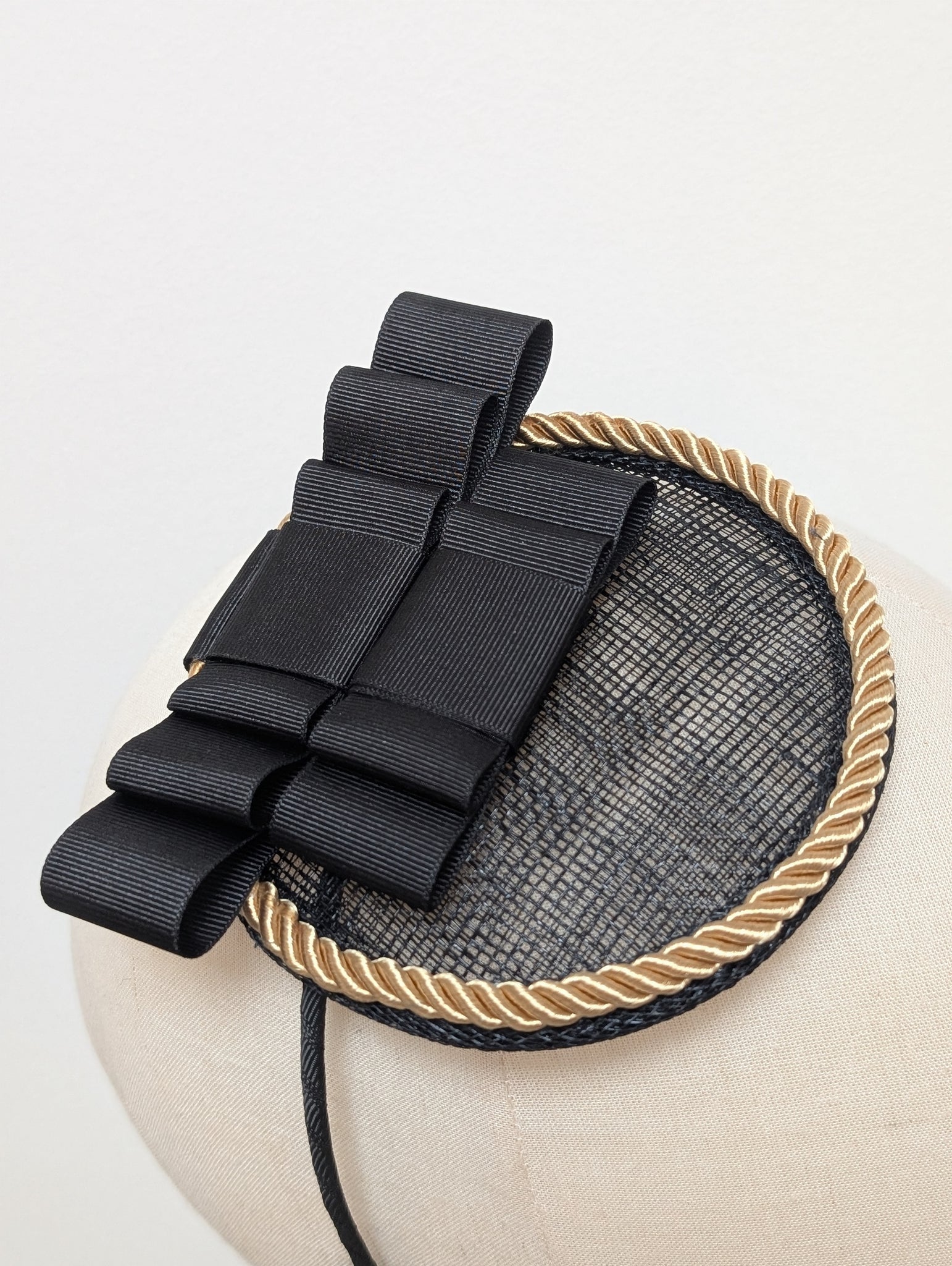 Luxurious sinamay base trimmed in the signature Roseings style and adorned with Dior bows.